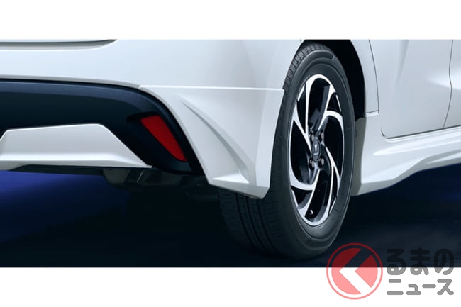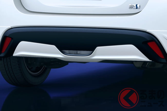 リアバンパーガーニッシュはリアロアバンパーカバーに装着するボディ色のガーニッシュで、先進的なリアスタイルを演出。リアバンパー左右にはボディ色のリアスパッツを装着しています。