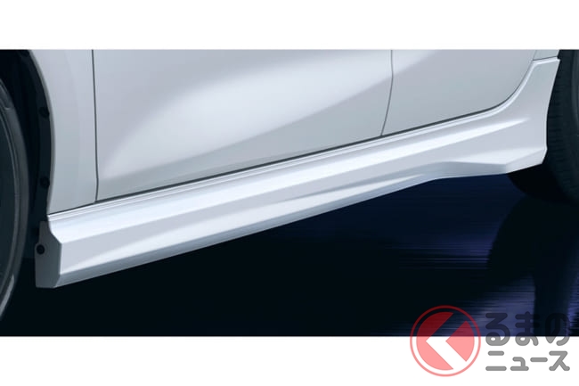フロントスポイラーは、ロー&ワイドな印象を高めるためにセンター部にボディ色を通すことで視覚的な重心を下げ、派手すぎないワンポイントアクセントのメッキ加飾を追加することで、大人びたオシャレを演出。また、サイドスカートは、造形の深いスタイリッシュさを表現しています。
