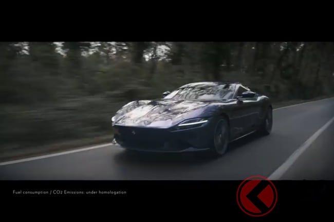 2019年11月にフェラーリが発表した、V型8気筒ターボエンジンをフロントに搭載した「ローマ」の姿が、フェラーリの公式SNSでさらに明らかになりました。