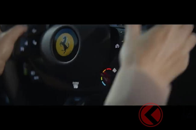 フェラーリ・ローマが激走するシーンに、インテリアのアップの映像などがインサートされているので必見です。