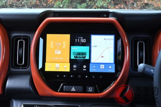 インフォテイメント面では、スズキ初となる9インチモニターを採用。見やすい大画面が採用された、スマートフォンとの連携も可能なメモリーナビゲーションとなっています。