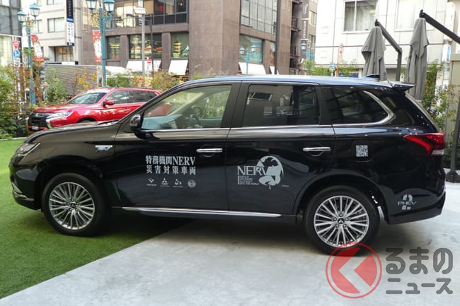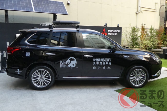 「特務機関NERV 防災アプリ」などを通じて防災情報を配信するゲヒルンと、三菱、スカパーJSATの3社は、三菱のミッドサイズSUVでプラグインハイブリッドのフラッグシップモデルである「アウトランダーPHEV」をベースに、カイメタ社製平面アンテナを搭載。長期間の停電が発生しても、スカパーJSATの通信衛星を経由してインターネットに接続できるシステムを提供する「特務機関NERV災害対策車両」を製作しました。
