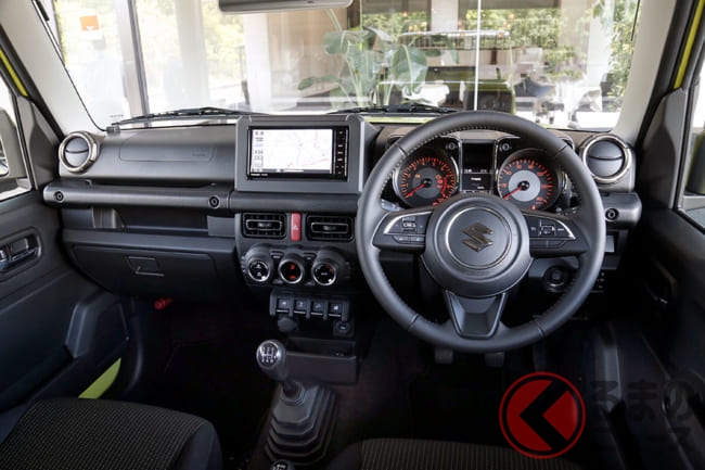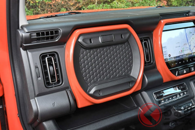 インテリア担当者によると「ダッシュボード上部のデザインと、ダッシュボード全体の横方向への繋がり感は、ジムニーに通じるところがある」といいます。