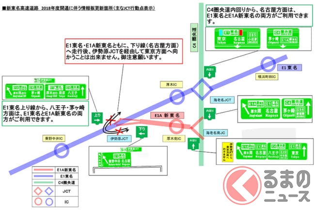 しかし、最近では海老名南JCTから圏央道(八王子、茅ヶ崎方面)に通行する交通量も増加しており、場合によっては伊勢原JCTに入る従来に巻き込まれる可能性もあり、かえって時間が掛かることもあるようです。
