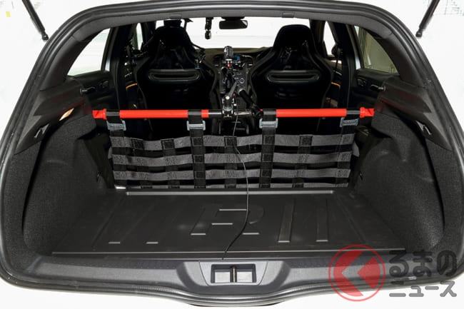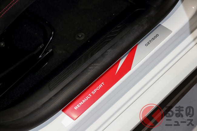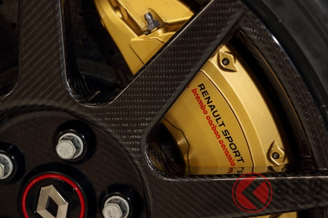 5ドアハッチバックながら、リアシートを廃した2シーターで、メガーヌR.S.トロフィーと比べて130kgも軽量化。アクラポビッチのマフラーやオーリンズの車高調整式ショックアブソーバー、ブレンボのブレーキ、さらにR.S.専用のブリヂストン・ポテンザS007タイヤなど、さまざまな専用パーツで武装しています。