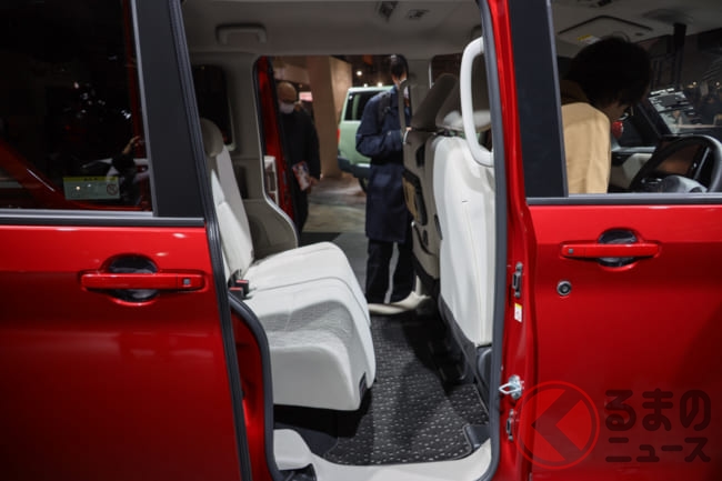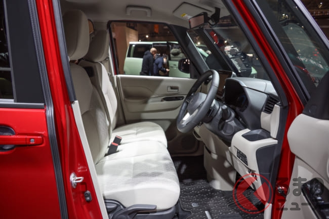 「新型eKスペース/eKクロス スペースは、リアスライドドアの開口幅は650mm、室内高は1400mmと、圧倒的な室内の広さがウリとなっています。