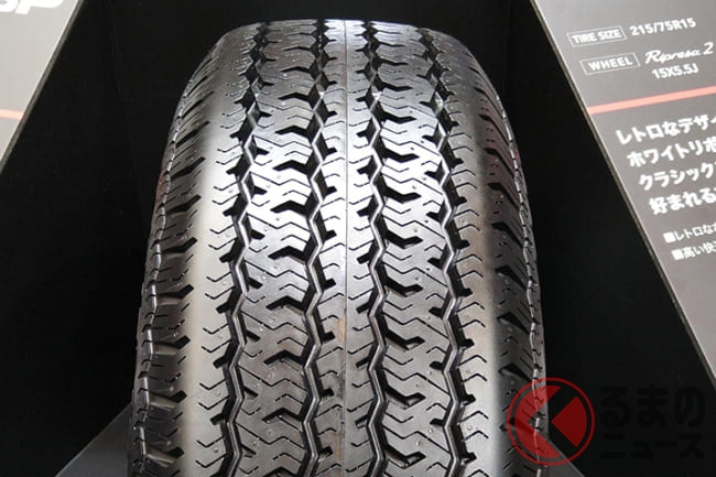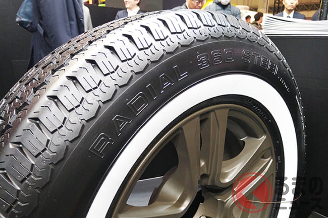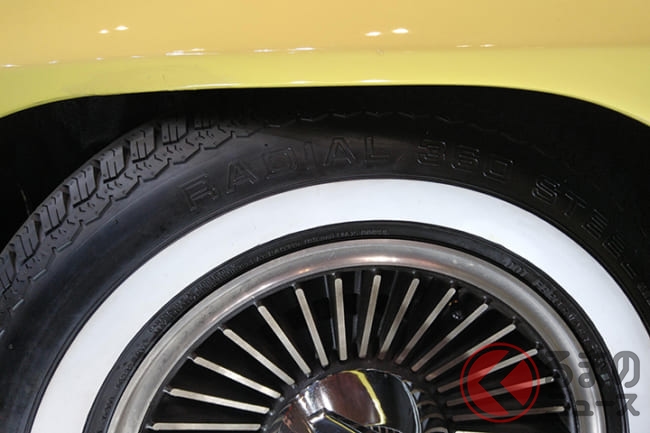 なかでも来場者の注目を集めていたのが、デモカーとして展示されていた2代目C2コルベット。まるで新車のように美しいそのモデルに装着されていたのが、ホワイトリボンが特徴的な「RADIAL 360 STEEL」です。