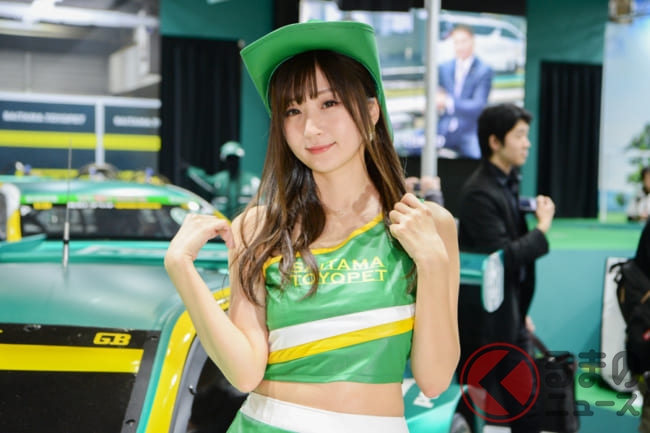 スーパーGT、スーパー耐久など、日本のレースカテゴリを総なめにしているといっても過言ではない埼玉トヨペット グリーンブレイブブースでは、現役レースクイーンが勢ぞろい。癒しの笑顔で迎えてくれます。