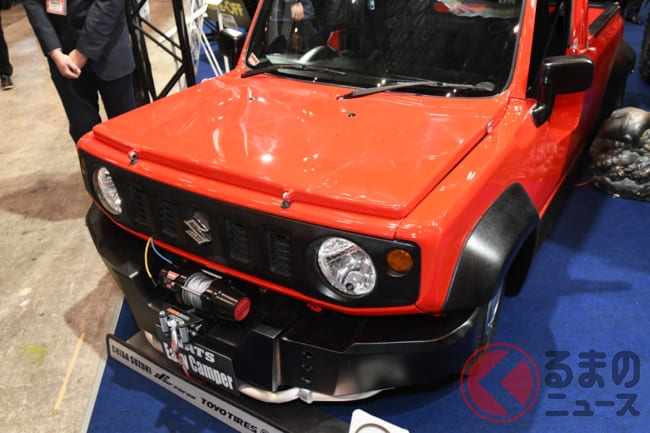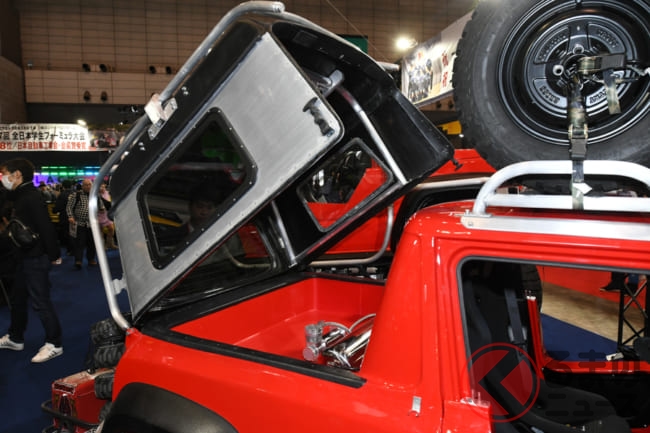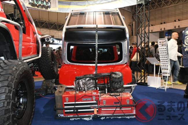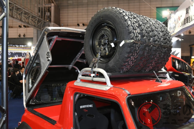 日本最大級のカスタムカーの祭典「東京オートサロン2020」で、屋根にタイヤを積載したピックアップトラックのスズキ「ジムニー」が出展されました。