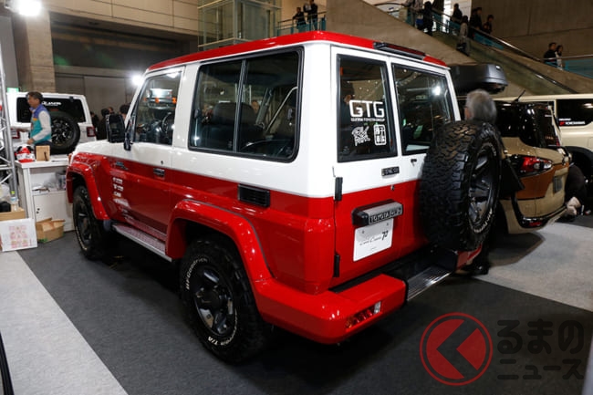 過去には、トヨタ系列でありながら、ランドクルーザー(40系)の見た目にカスタムされたスズキ「ジムニー」を展示して、来場者の注目を集めました。