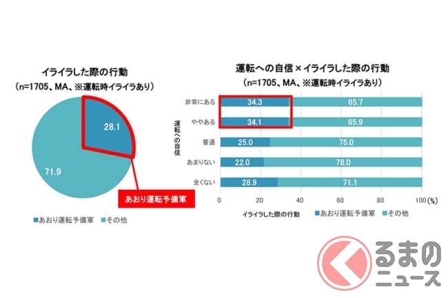 運転中イライラすることのある人のうち28.1%が「あおり運転予備軍」