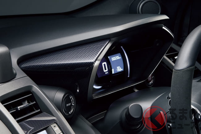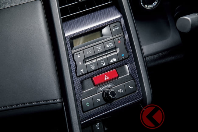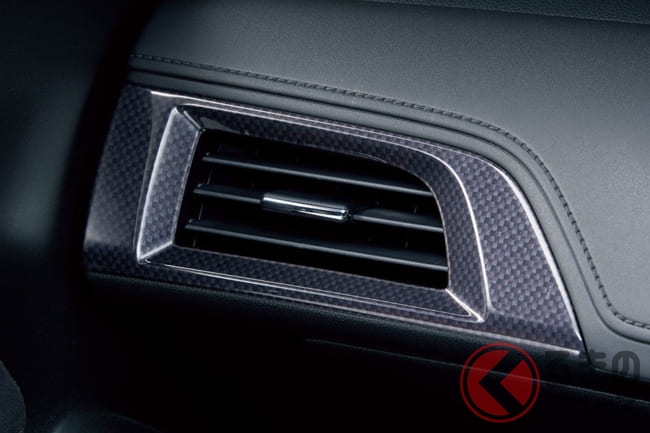 内装は、アルカンターラのサイドブレーキカバーやセレクトノブ、シフトブーツなどに加え、カーボン調のインテリアパネルをメーターバイザーパネル部や助手席エアアウトレットパネル部、センターコンソールパネル部にそれぞれ設定しました。