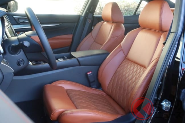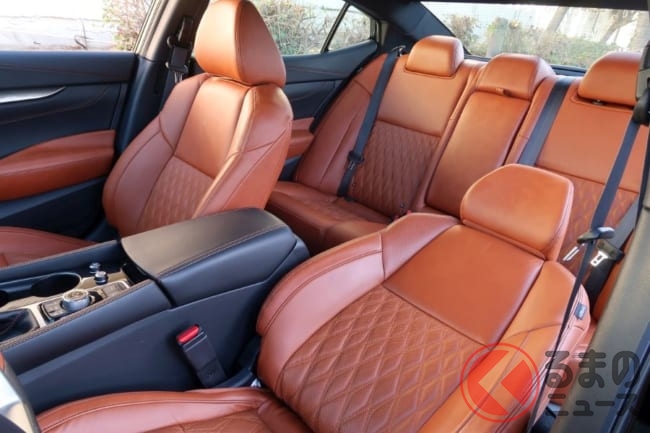 一方、内装デザインは外観ほど攻めたデザインではありませんが、プレミアム感が印象的です。シートは繊細な肌触りが自慢のセミアニリンレザーで、座面と背もたれにダイヤモンドキルト処理が施されていることもあって乗り込む瞬間にラグジュアリーさが伝わってきます。
