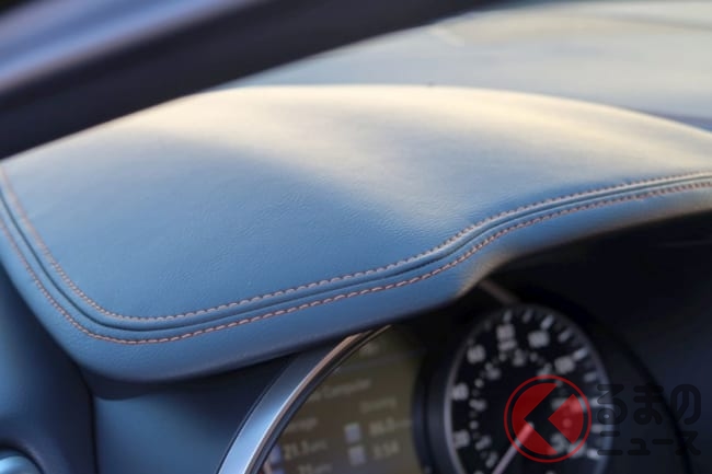 まるで「キャデラック」などプレミアムブランドのような仕立てに驚きです。ドアのアームレスト部分にまで大胆に本革をコーディネートし、またダッシュボードやセンタコンソールはリアルステッチ入りのソフトパッドを張ってあり、これも上質さを印象付けるポイントといえます。