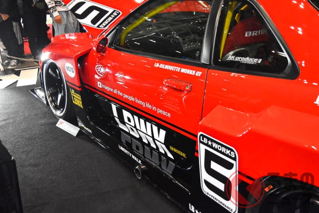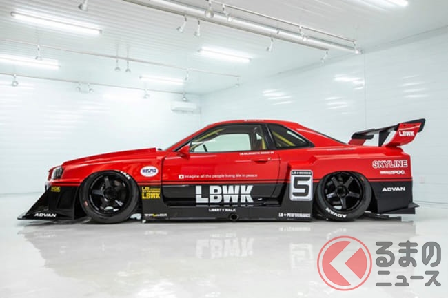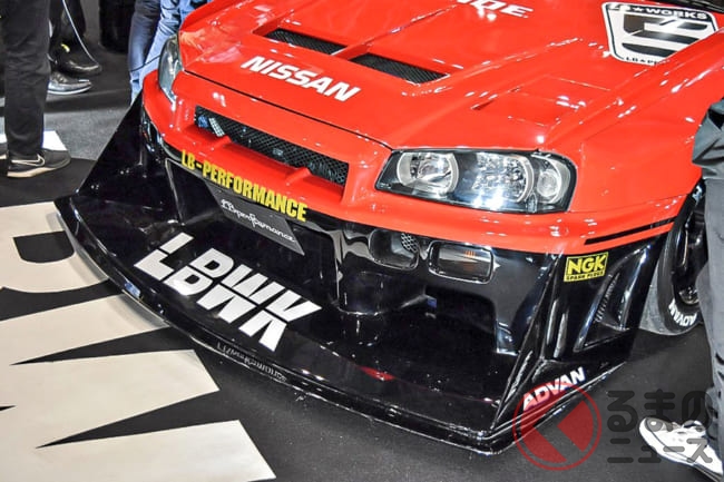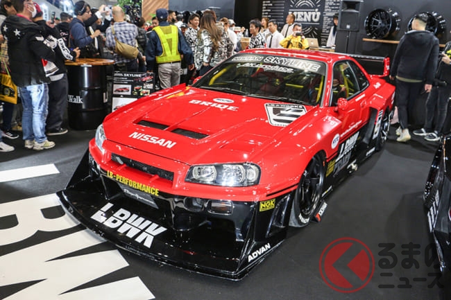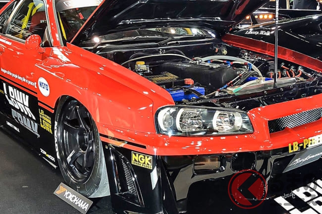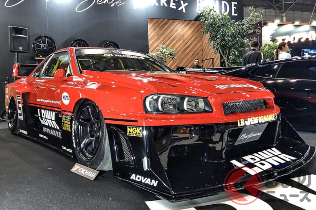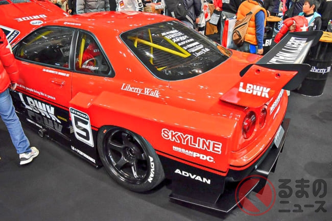 東京オートサロン2020で、もっとも注目を集めたブースのひとつがリバティウォークでしょう。年々拡大しつつあるリバティウォークのブースには、何台ものデモカーが展示されましたが、なかでもとくに注目を集めたのが、「ER34スカイライン」をベースに製作した「LB-ER34スーパーシルエットスカイライン」です。