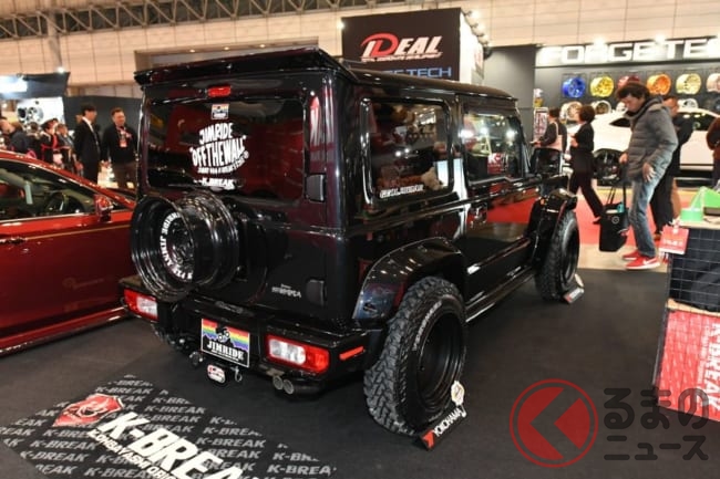 今回のオートサロンで、ジムニーのカスタムカーを出展していた大阪の「Kブレイク」。元々はVIP系のカスタムパーツメーカーですが、初めてクロスカントリー系SUVのカスタムを手がけています。