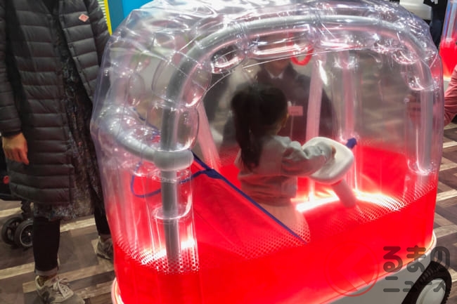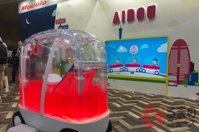 一方で、AIBOUを真剣な目で見るスーツ姿のサラリーマンたちも大勢いました。近年、MaaS(モビリティ・アズ・ア・サービス)という観点で、自動運転や小型移動車に関して産学官のさまざまな分野で議論が進んでいます。