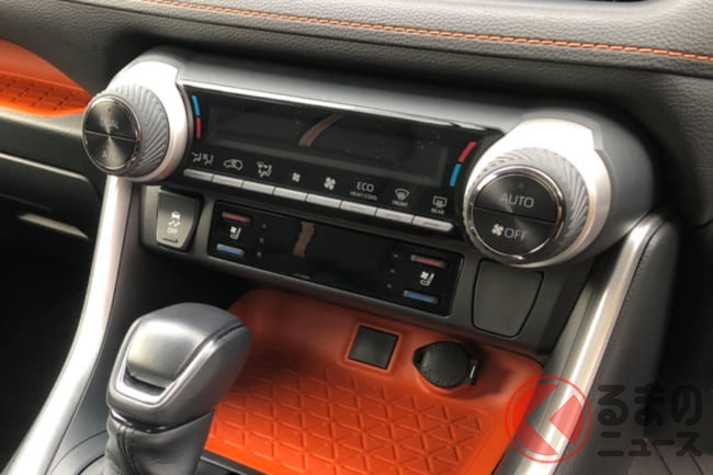 内装についても、アウトドアを意識した作りとなっており、エアコンの温度調節のダイヤルにはラバーが巻かれていて操作感が良いです。その一方で、エアコンのモード切り替えや風量調整のボタンは小さく、押しづらい点が気になりました。