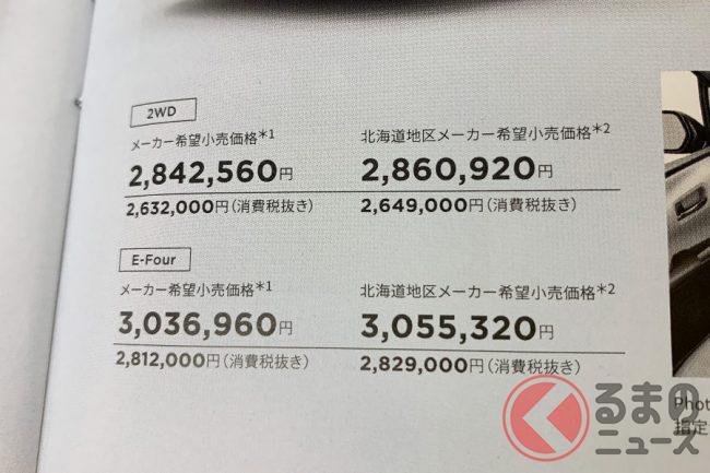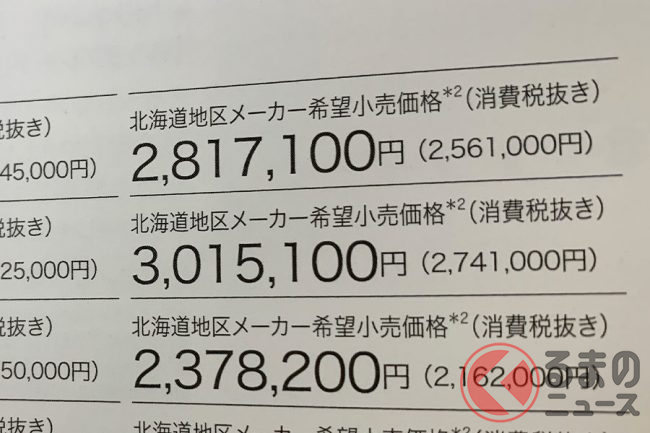 そんななか、通常の車体本体価格とは別に「北海道地区価格」という記載があり、北海道地区だけは約2万円ほど高く設定されています。