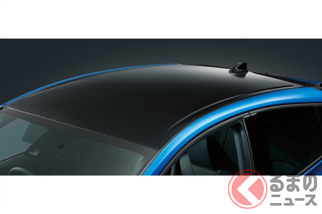また、外観の印象を変えるメーカーオプションとして、「幾何学調ルーフフィルム」(5万5000円、エモーショナルレッドIIとの組み合わせの場合9万9000円)があります。ルーフがブラック化してボディが2トーンとなり、精悍な雰囲気を演出します。