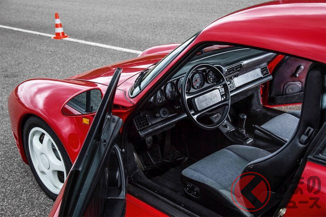 外観は「911」の全幅を拡大したようなフォルですが、ほぼすべてのパーツが959専用になっており、アラミド系繊維強化プラスチックなど、当時、最先端の素材が使われています。