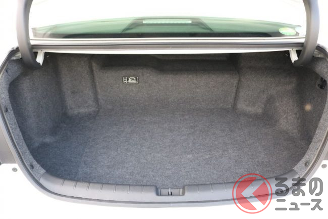 室内空間では、たとえばトランクルームにおいて、日本仕様に設定されるのは、ハイブリッド車のみですが、従来のハイブリッド車は後席の後ろに駆動用バッテリーを搭載する影響でガソリン車(日本では未設定)に比べて奥行きが狭くなっていました。