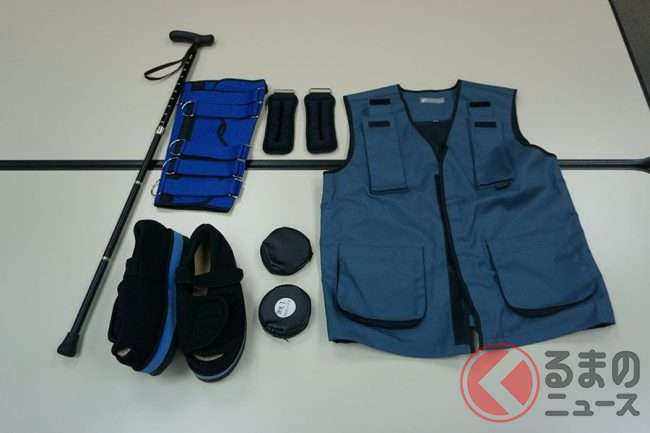 今回、使用した高齢者疑似体験キットは、理学療法士が監修したもので、介護者の教育などで使われています。