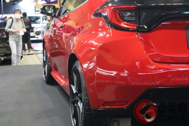 新型ヤリスをベースにしているGRヤリスですが、ノーマルのヤリスが5ドアなのに対し、GRヤリスは3ドアとなっており、とくにリアの形状は大きく異なっています。