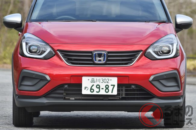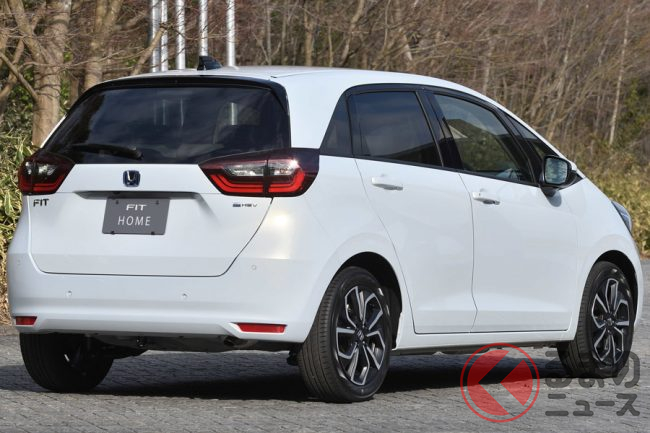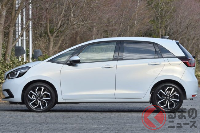 「2020年2月に発売された新型『フィット』の例で説明すると、上から見て約8度異なります。クルマに乗ったドライバーから見て右側のドアミラーを基準とすると、左側のドアミラーは8度ほど内側に傾いて固定されている状態です」(ホンダ広報担当者)