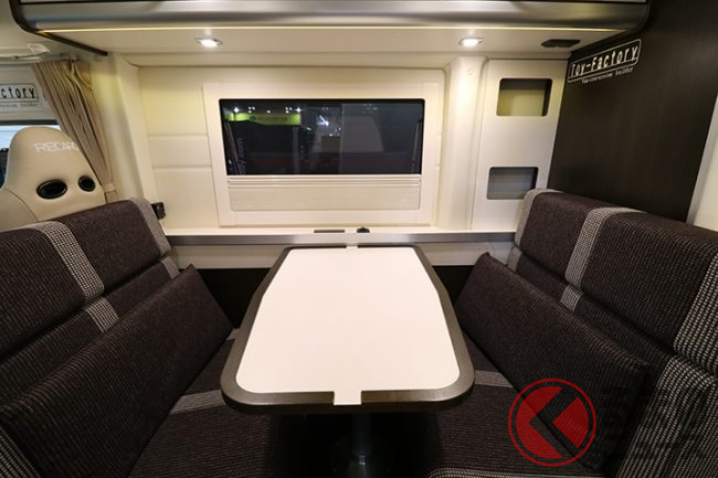 展示車のExsisシリーズは、HYMERの売れ筋ということですが、ボディサイズにはこだわっているとのことで「全長もそうですが、車幅を一番気にするユーザーが多いので、全幅は2.2mに抑えています」(阿部社長)。