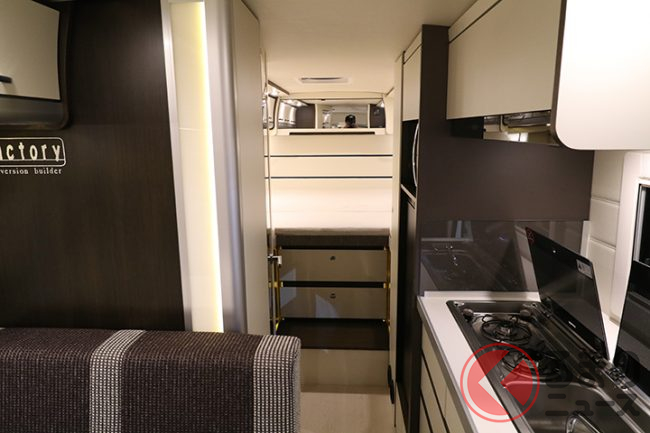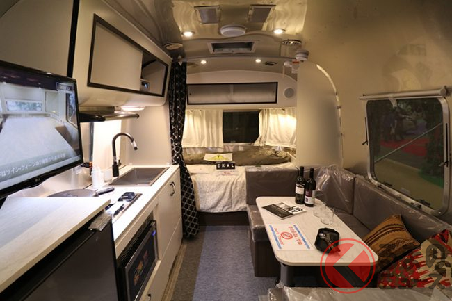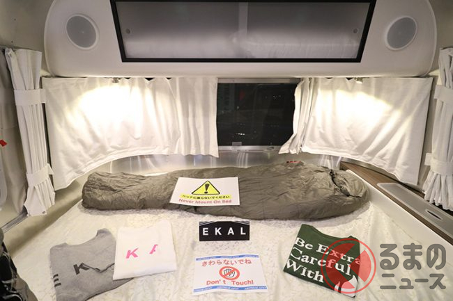 ボディサイズも全長で6m、車幅で2m超となる大きさを誇り、人が寛げる空間はもちろん、就寝するベッドまでラグジュアリーな仕様で、贅沢な空間を提供している。