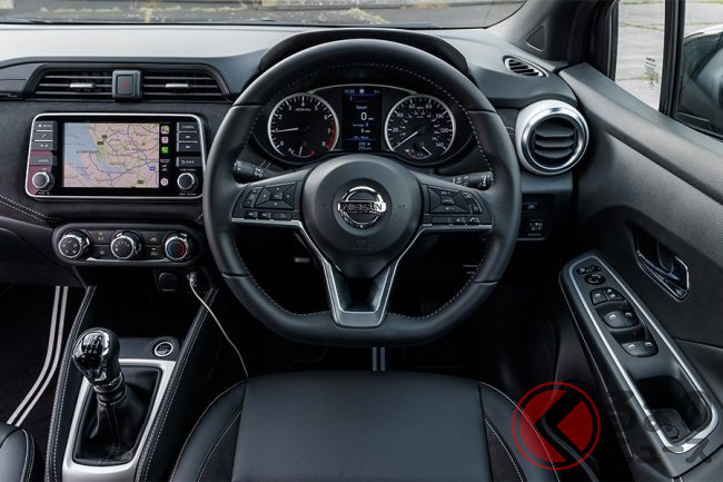 外観では最近の日産車を象徴する「Vモーショングリル」を採用し、ボディサイズは全長3995m×全幅1743mm×全高1455mm(UK仕様)と大型化されました。