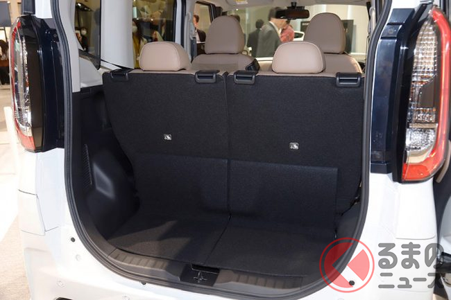 リアのデザインも大きく変更されました。車両の幅いっぱいまで延長されたテールゲートガーニッシュや縦長でシャープな形状のテールランプなど、新型ルークスは全体的にすっきりとしたリアビューを実現しました。さらに、テールゲートのドアハンドルも隠れたデザインとすることで、洗練された印象です。