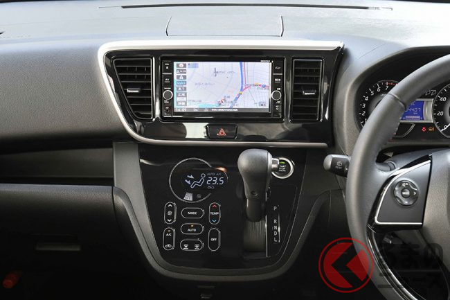 内装の違いで目を引くのは、中央のディスプレイです。先代のデイズルークスでは、ディスプレイとエアコンの吹き出し口がインパネに内蔵されていましたが、新型ルークスはダッシュボード上に設置。