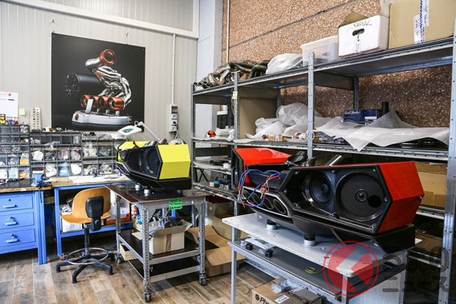 ファクトリーは、マセラティのコレクションで有名なパニーニ・ミュージアムの隣の建物で、ショールームと工房の小さな構え。ミュージアムを訪れた際に、運が良ければショールームで実際にサウンドを視聴させてもらえるかも。