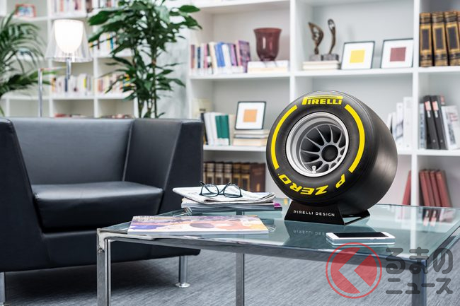 ESAVOXはサイズもかなり大きく、置く場所が限られてしまう。そこで紹介するのが、ピレリとコラボレーションした「ピレリPゼロ・サウンド」だ。直径は33cmほどとESAVOXに比べるとかなりコンパクト。ガレージやリビングにさり気なく置いておくとお洒落だ。
