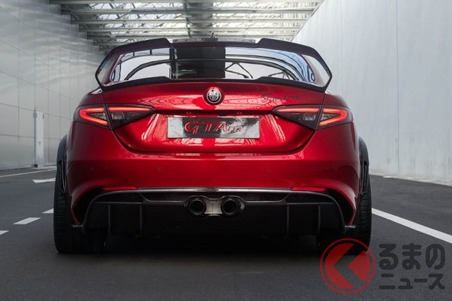 車名のGTAは「Gran Turismo Alleggerita(グラン・ツーリスモ・アレジェリータ)」の略語で、アレジェリータはイタリア語で「軽量化」。1965年に登場した「ジュリア スプリント GTA」を、その起源とするモデルだ。
