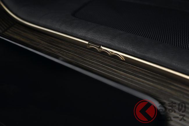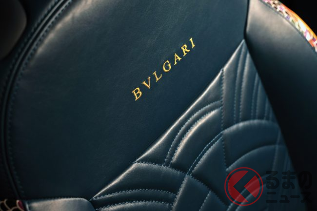 サイドシルとフロントモールディングには、ガラス加工技術が用いられている。ホイールは伝統的にブルガリのシンボルとされてきた星形デザインに、ブラックのラッカーとゴールドのトリムの組み合わせだ。サイドには、光沢のあるゴールドにダイヤを埋め込んだ「B.500」ロゴを組み合わせる「jewel(宝石)」バッジが装着された。