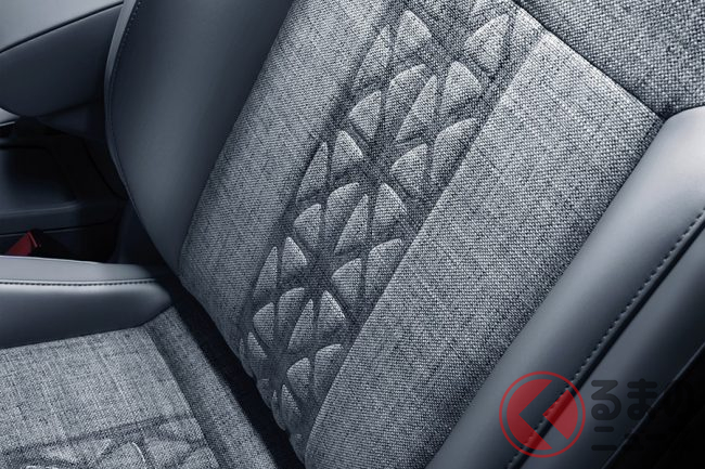 インテリアに採用される手触りのよいテキスタイルのプラスチック素材は、最新のカルテル製のチェアと同様に100%リサイクルのポリプロピレンだ。ファブリックはナチュラルで暖かい雰囲気を醸し出しているが、これもリサイクル・ポリエステル100%の素材となっている。