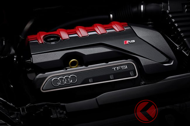 アウディのRSモデルには、ホットなパワーユニットが搭載されるのがお決まりだが、このRSQ3にはお馴染みの2.5リッター直列5気筒直噴ターボが与えられる。
