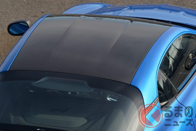 A110ピュアに対するA110Sの外観上の違いは、前後のALPINEのエンブレムはブラックになり、ブレンボ社製ブレーキキャリパーがオレンジ色に、ルーフがカーボンファイバー製に変わっているのですぐに見分けがつく。
