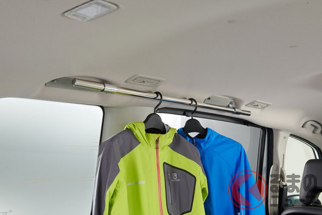また、上着やタオル類などの収納に便利なアイテムが、左右のアシストグリップにベルトで固定するルーフネットです。天井のデッドスペースを有効に活用できるので、収納スペースの少ない車種にこそ使えそうです。