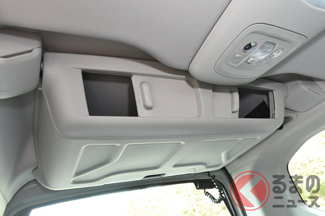 パノラミックルーフは電動サンシェードが付き、ルーフアーチ中央にはムードライトも備わる。さらに後方のラゲッジスペースの真上には後席側とリアゲート側の両方からアクセス可能な約60リットルもの容量を持つシーリングボックスが設けられている。
