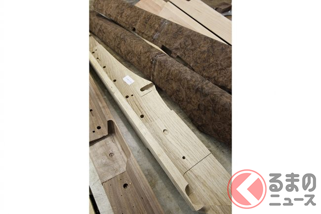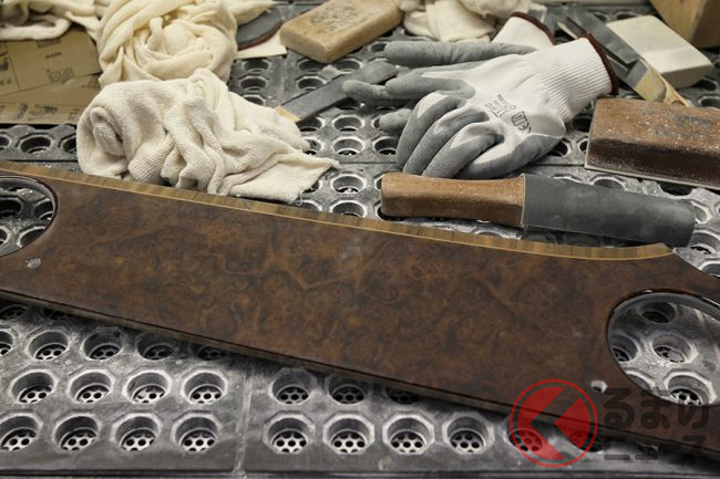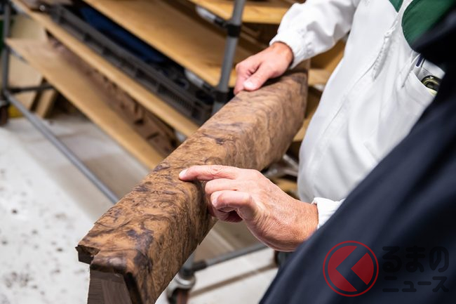これらの木材はクルーに大切に保管されており、ベニヤの最終的な選択はクルーでおこなわれる。
