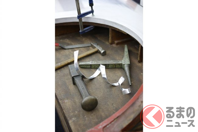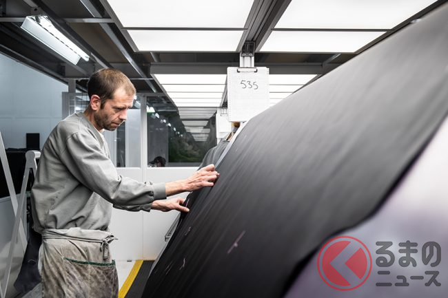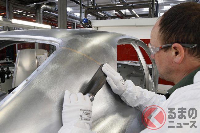 ルーフからDピラーを通ってリアハンチに流れ込む箇所では、専任のチームが接合部分を手作業でろう付けするが、この個所を仕上げるには人間の手による感触が重要で、塗装後には接合部は完全にわからなくなり、その見た目も感触も、まるで金属の塊から削り出されたような仕上がりとなる。