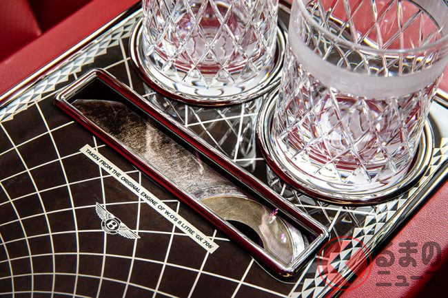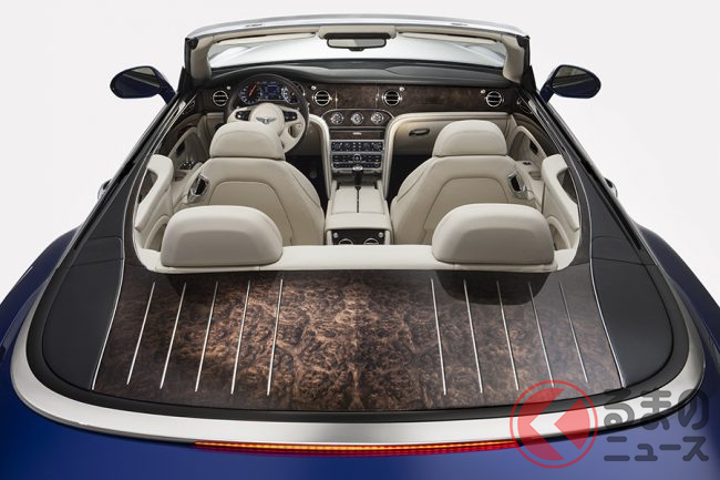 リアトノー自体が、ベントレーが誇る最高のクラフツマンシップを顕著に示しており、完璧なブックマッチ加工(はぎ合わせ)と鏡面仕上げが施され、ダークステイン処理されたバーウォールナット製トノーは、ベントレーがこれまで使用してきたウッドベニヤのなかで最も大きい部材を使用している。