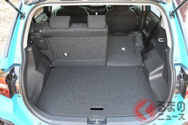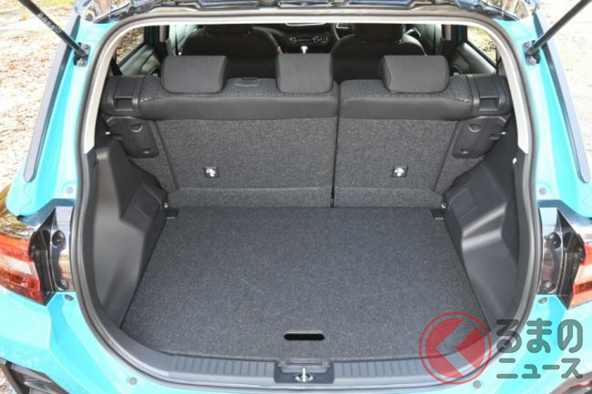 ダイハツによると、このライズ(ロッキー)の特徴はボディの小ささを感じさせない車内の広く、5名乗車時であっても荷室幅1000mm×荷室高865mm×荷室長755mmを確保しているといいます。