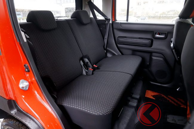 軽自動車のシートには、セパレートタイプとベンチシートタイプがありますが、タフトとハスラーの前席は、どちらもセパレートタイプです。タフトのシートは前後ともにデジタル迷彩柄とオレンジのステッチが組み合わされ、アクティブなデザインです。