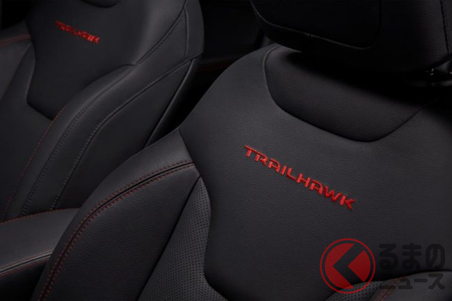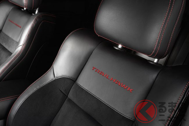 インテリアには、レザーとスエードのインサートを組み合わせたTRAILHAWKのロゴ入りシートを採用。レッドステッチをあしらったインテリアアクセントが、車内を上質な雰囲気で包み込んでいる。
