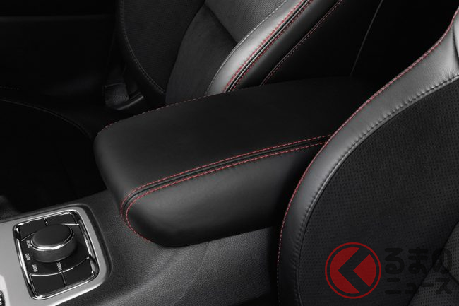 インテリアには、レザーとファブリックを組み合わせたTRAILHAWKロゴ入りコンビネーションシートを採用し、レッドステッチ入りのインテリアアクセントが冒険心を演出する。